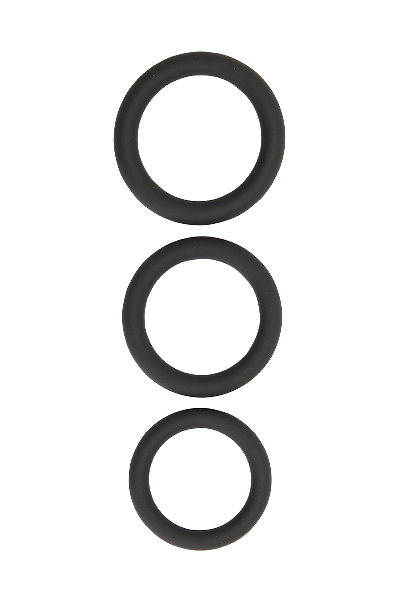 3 anneaux de pénis en silicone de diamètres différents, pour serrer la verge et/ou les testicules.
