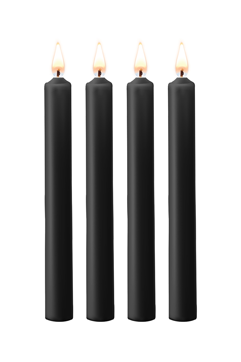 Kit de 4 Bougies Basse Température noires Teasing Wax Candles Large (18 x 1,8 cm), par le spécialiste du BDSM Ouch!