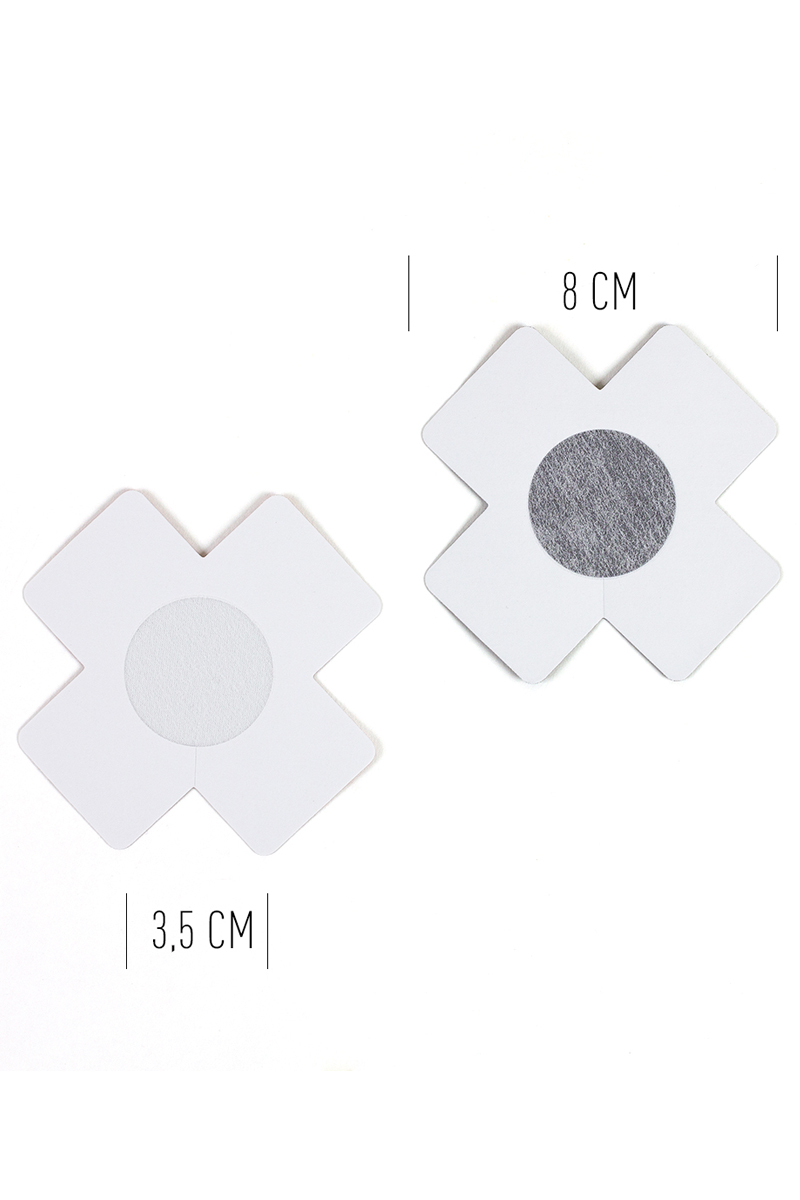 1 paire de cache-tétons adhésifs noirs et 1 paire de cache-tétons roses en forme de croix, marque Secret Play.