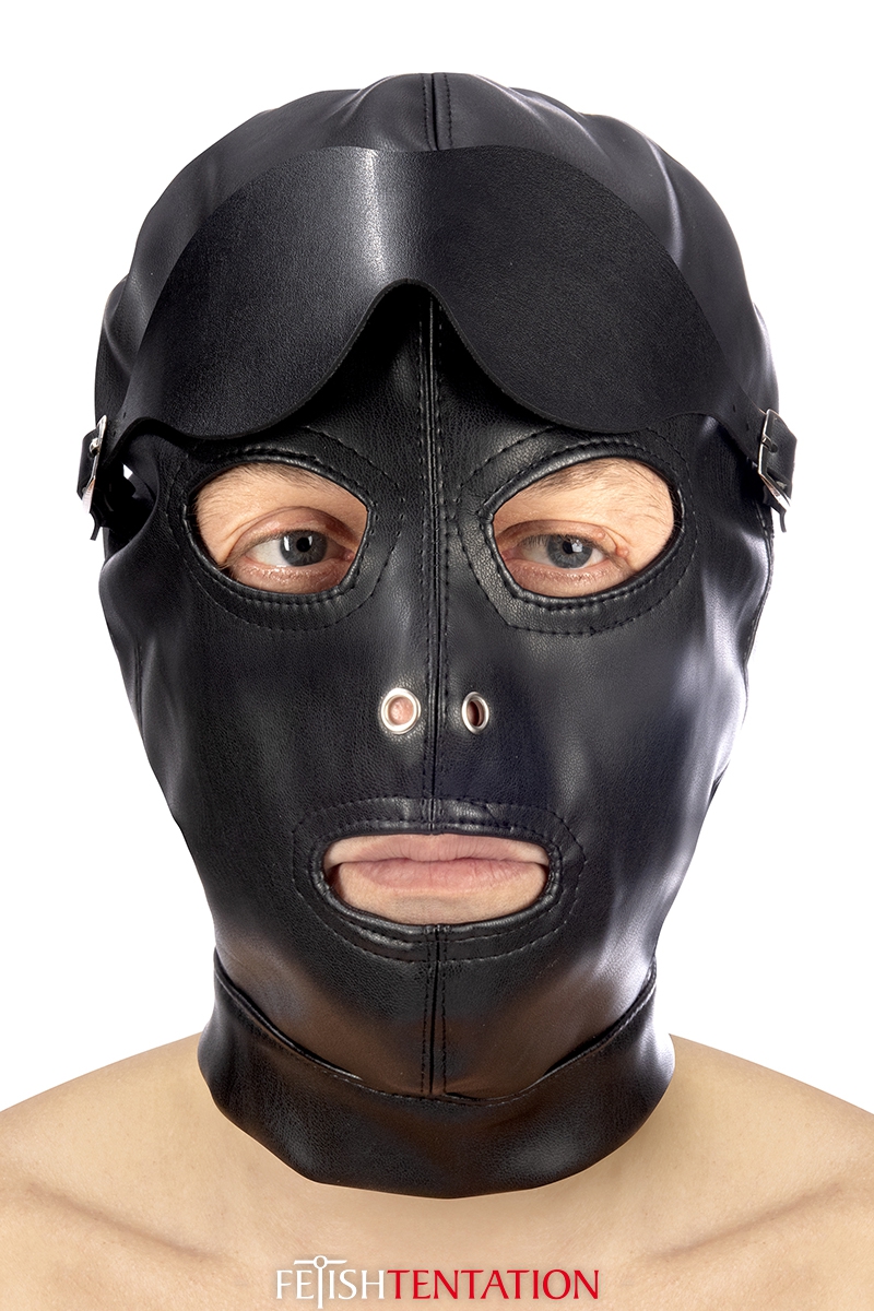 - Cagoule BDSM avec ouverture pour la bouche et bandeau amovible pour les yeux