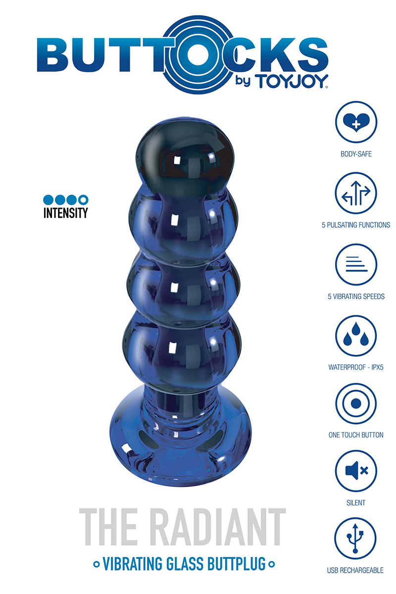 Fabriqué en verre borosilicate de haute qualité, "The Radiant" est vibrant et a une forme annelée idéale pour décupler les sensations pendant la pénétration anale.